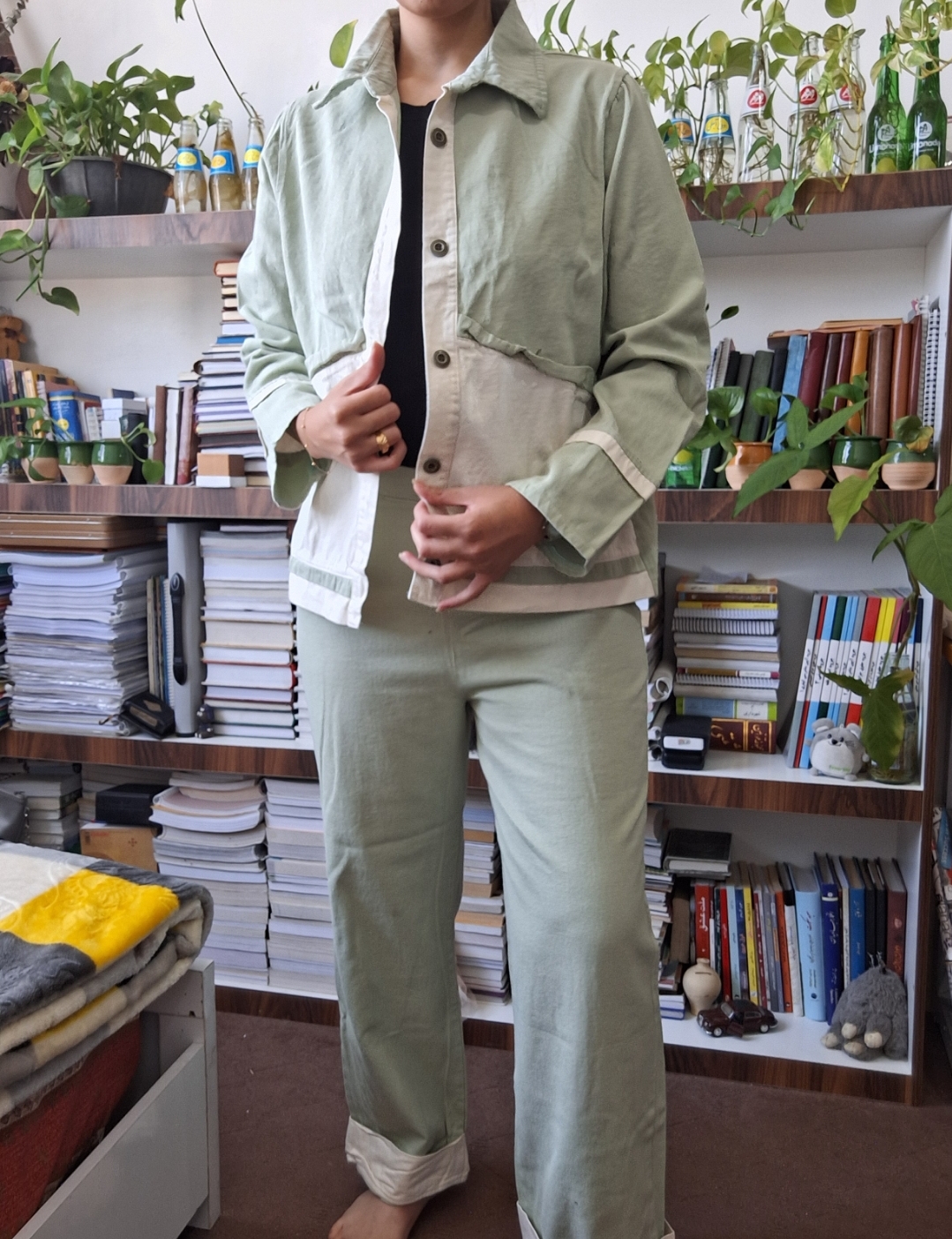 ست کتان زمینه یشمی+کرم(اتمام موجودی❌️)